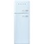 Холодильник с морозильной камерой в стиле 50-х годов голубого цвета. Дверца не перенавешиваемая, упор расположен слева. Холодильная камера размораживается автоматически, морозильная — вручную.