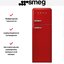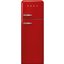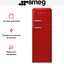 Холодильник Smeg FAB30RRD5 — двухдверная модель с верхней морозильной камерой из известной серии в духе 50-х. Корпус красного цвета дополняет серебристая фурнитура. Благодаря автоматическому размораживанию на стенках холодильного отделения не образуется иней. Вентилятор поддерживает одинаковую температуру во всей камере. Полки изготовлены из закаленного стекла. На дверце имеется полка с крышкой для хранения масла и сыра. Для регулировки температуры используется термостат.