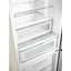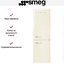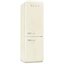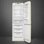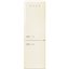 Отдельно стоящий двухдверный холодильник Smeg FAB32RCR5 — вместительная модель высотой 197 см и шириной 60 см для просторной кухни. Глянцевый корпус универсального кремового цвета со стильной серебристой фурнитурой изготовлен в стиле 50-х годов и имеет характерную округлую форму. Дверца неперенавешиваемая, дверной упор расположен справа. Морозильная камера объемом 97 литров располагается снизу. Модель с двумя контурами охлаждения исключает смешивание запахов. Система размораживания «Полный No-Frost» в обеих камерах гарантирует удобный уход, так как на стенках не образуется иней. В холодильном отделении имеются регулируемые полки из закаленного стекла, ящик для овощей и фруктов на скользящих направляющих и зона свежести с температурой от −2°C до +3°C. Температура регулируется при помощи термостата. Вентилятор способствует равномерному распределению воздуха по всему пространству камеры. Морозильное отделение способно сохранять холод на протяжении 40 часов при отключении питания. Уровень шума очень низок и составляет всего 37 дБ(А).