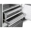 Отдельно стоящая модель высотой 212 см и шириной 88 см в серебристом корпусе с обработкой против отпечатков пальцев предназначена для просторной кухни. Оба отделения оснащены системой размораживания No Frost, исключающей намерзание инея на стенки. Холодильная камера включает зону свежести для хранения мяса и рыбы при нулевой температуре и отделение переменного назначения Multizone. Полки из закаленного стекла и металла переставляются по высоте. Морозильное отделение представляет собой выдвижной ящик. Режим суперзамораживания гарантирует сохранность всех полезных качеств пищи.