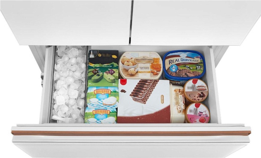 Трехкамерные модели выпускаются в нескольких вариантах. В некоторых случаях в качестве третьей камеры поступает так называемая зона свежести — отделение, где поддерживается температура около 0 градусов. В другом варианте подобные модели имеют морозильную камеру, состоящую из двух выдвижных ящиков.