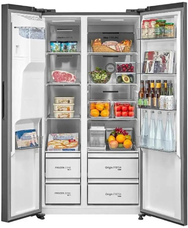 Холодильники Side-by-Side, что в переводе означает «бок-о-бок», — вместительные устройства, в которых холодильная и морозильная камеры располагаются рядом друг с другом. Они предназначаются для хранения значительного запаса продуктов и иногда называются холодильниками с американским типом компоновки, поскольку такие приборы с распашными дверями появились именно в США.