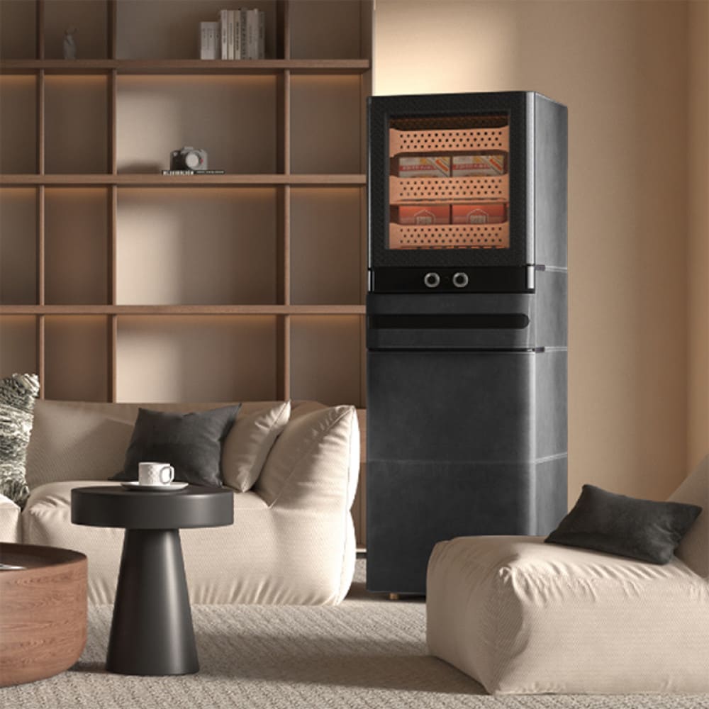 Установлен на воздуховоде, чтобы удалять примеси и запахи, которые могут нарушить выбранные условия хранения сигар.
