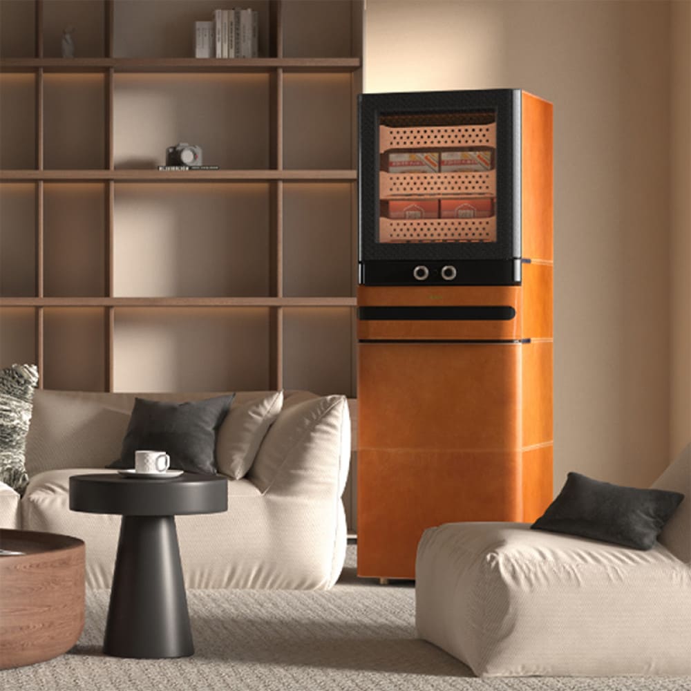 Установлен на воздуховоде, чтобы удалять примеси и запахи, которые могут нарушить выбранные условия хранения сигар.