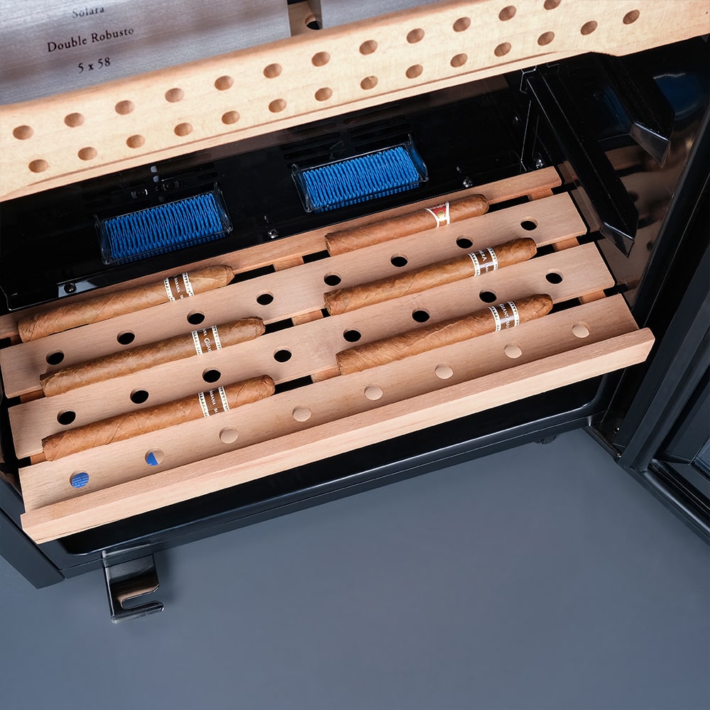 Вентилятор в хьюмидоре обеспечивает поддержание необходимых условий для хранения сигар. Благодаря циркуляции воздуха не происходит нежелательного перепада температуры, поэтому внутри постоянно поддерживается нужный уровень влажности.