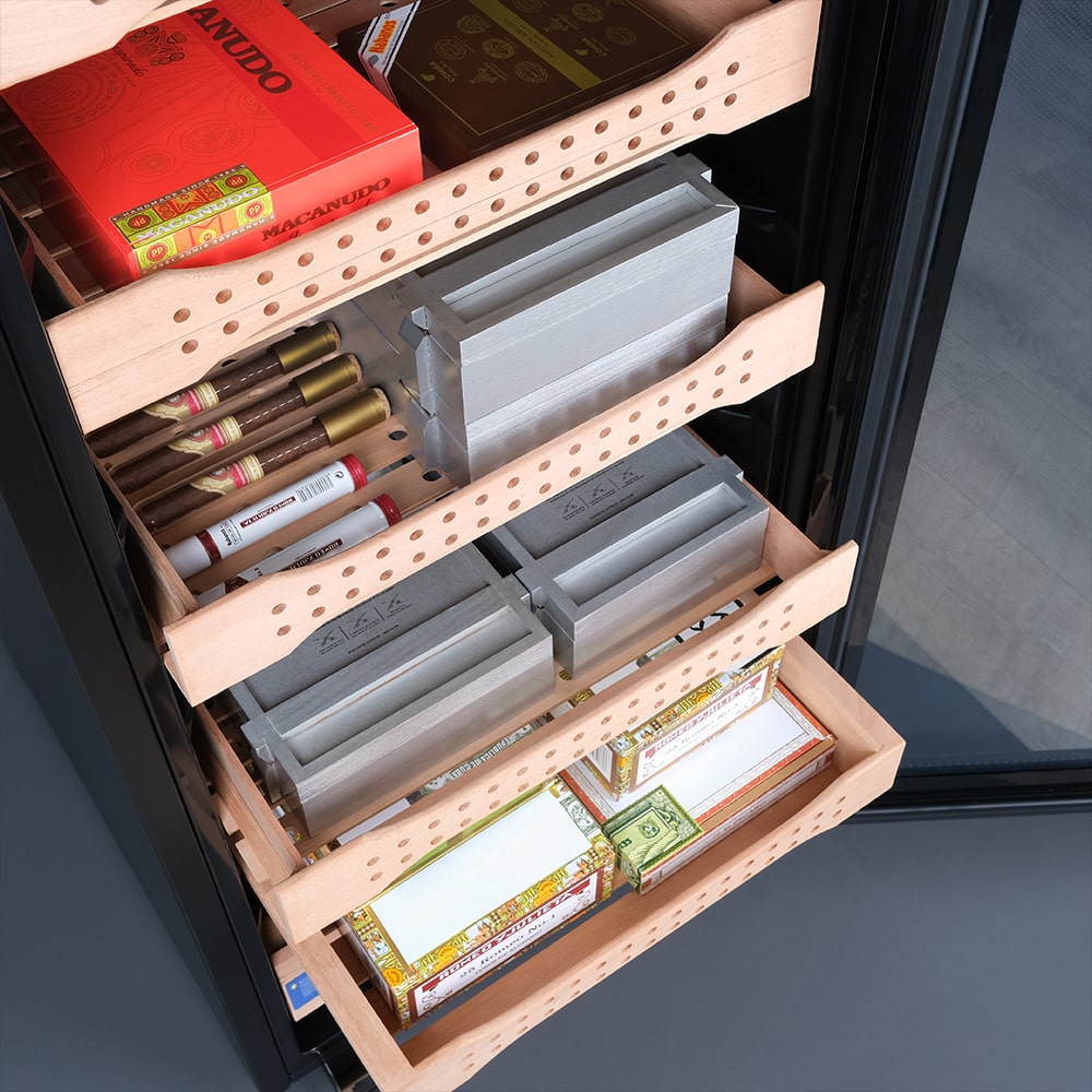 Качественное внутреннее освещение является одним из важнейших эстетических факторов восприятия хьюмидора. Благодаря ему вы сможете при более приятном свете осматривать находящиеся внутри сигары.