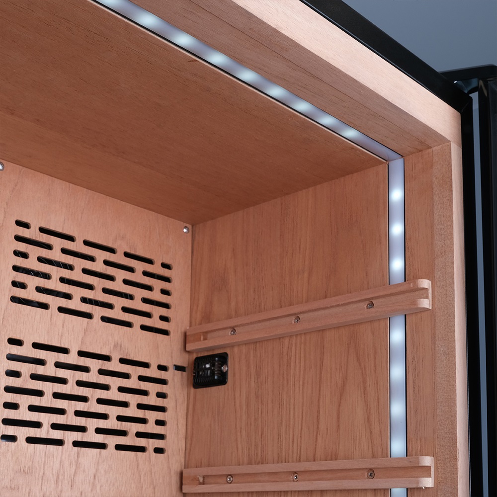 Качественное внутреннее освещение является одним из важнейших эстетических факторов восприятия хьюмидора. Благодаря ему вы сможете при более приятном свете осматривать находящиеся внутри сигары.