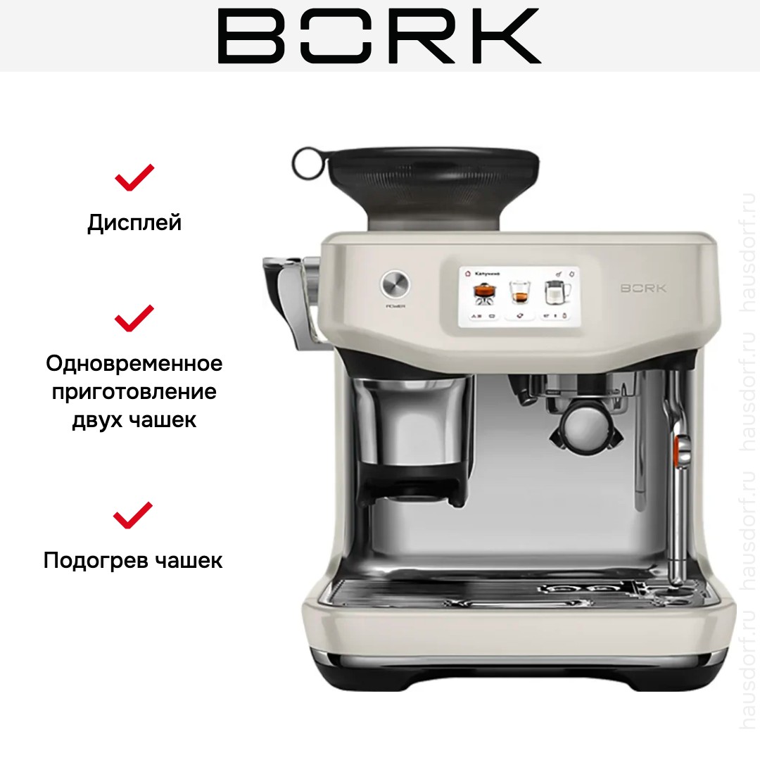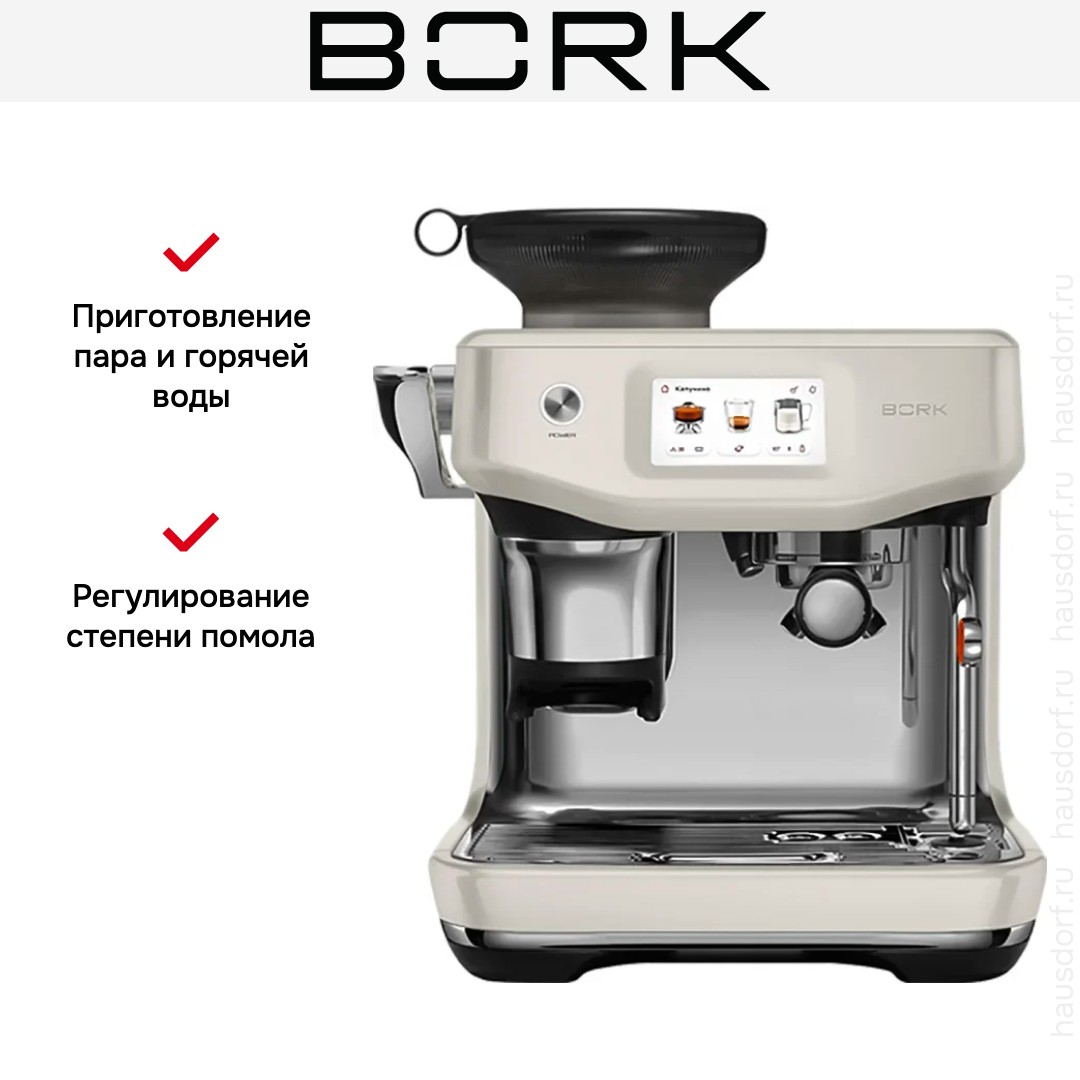 Кофейная станция Bork C810 WT — стильная и функциональная техника белого цвета с корпусом из нержавеющей стали, которая органично впишется в современную кухню или офисную зону. Дизайн сочетает премиальную отделку и продуманную эргономику. Светлая поверхность смотрится нейтрально в любой обстановке. Корпус из нержавеющей стали долговечен, устойчив к коррозии и сохраняет презентабельный вид при частом использовании. Компактные габариты 42×34×36 см и вес 11,1 кг позволяют без проблем установить прибор на стандартной столешнице.