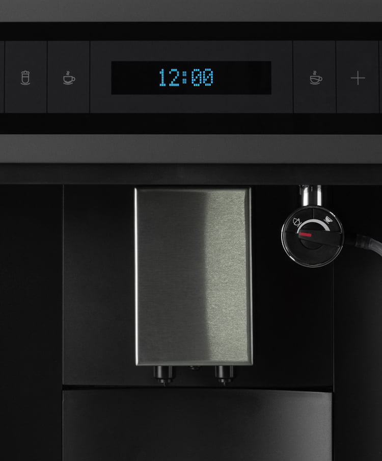 Встраиваемые кофемашины — автоматические устройства для приготовления напитков с молоком или без него. Весь процесс приготовления, от помола зерен и до очистки и промывки по завершении, происходит без участия пользователя. Машины оснащаются вместительными контейнерами для зерен, воды и молока с легким доступом. Размеры встроенных устройств позволяют устанавливать их в колонну с другой техникой: ширина составляет около 60 см, а высота — около 45 см. Как правило, все модели изготавливаются в современном стиле, оснащаются сенсорным управлением, подсветкой, полкой для подогрева чашек.