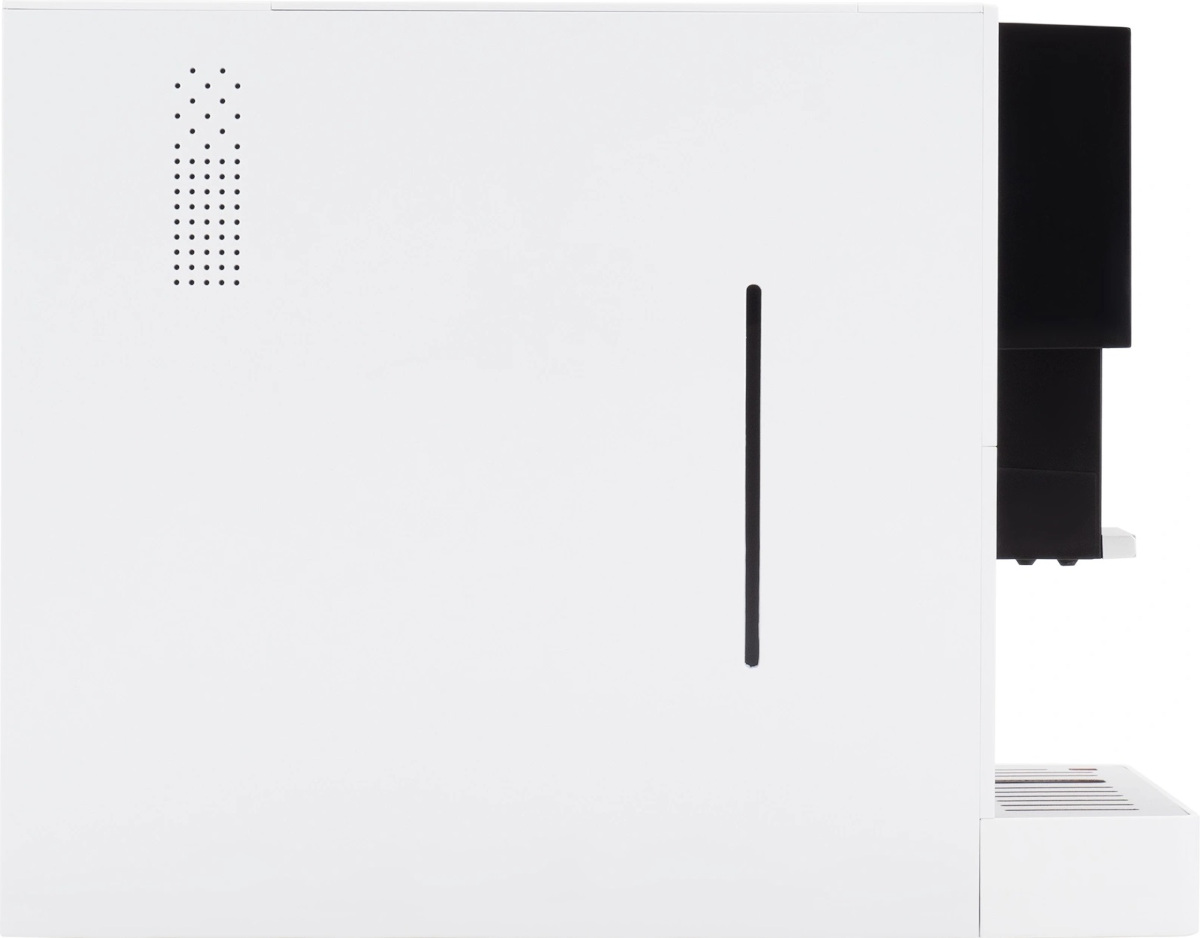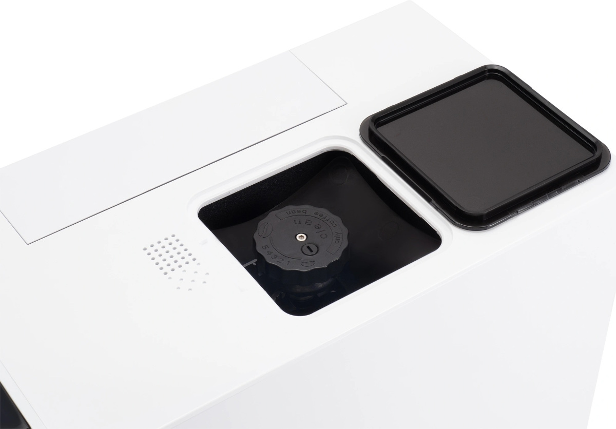 Визуальные характеристики кофемашины играют важную роль при выборе. Цвет корпуса этой модели — белый. Основной материал поверхности — пластик.
