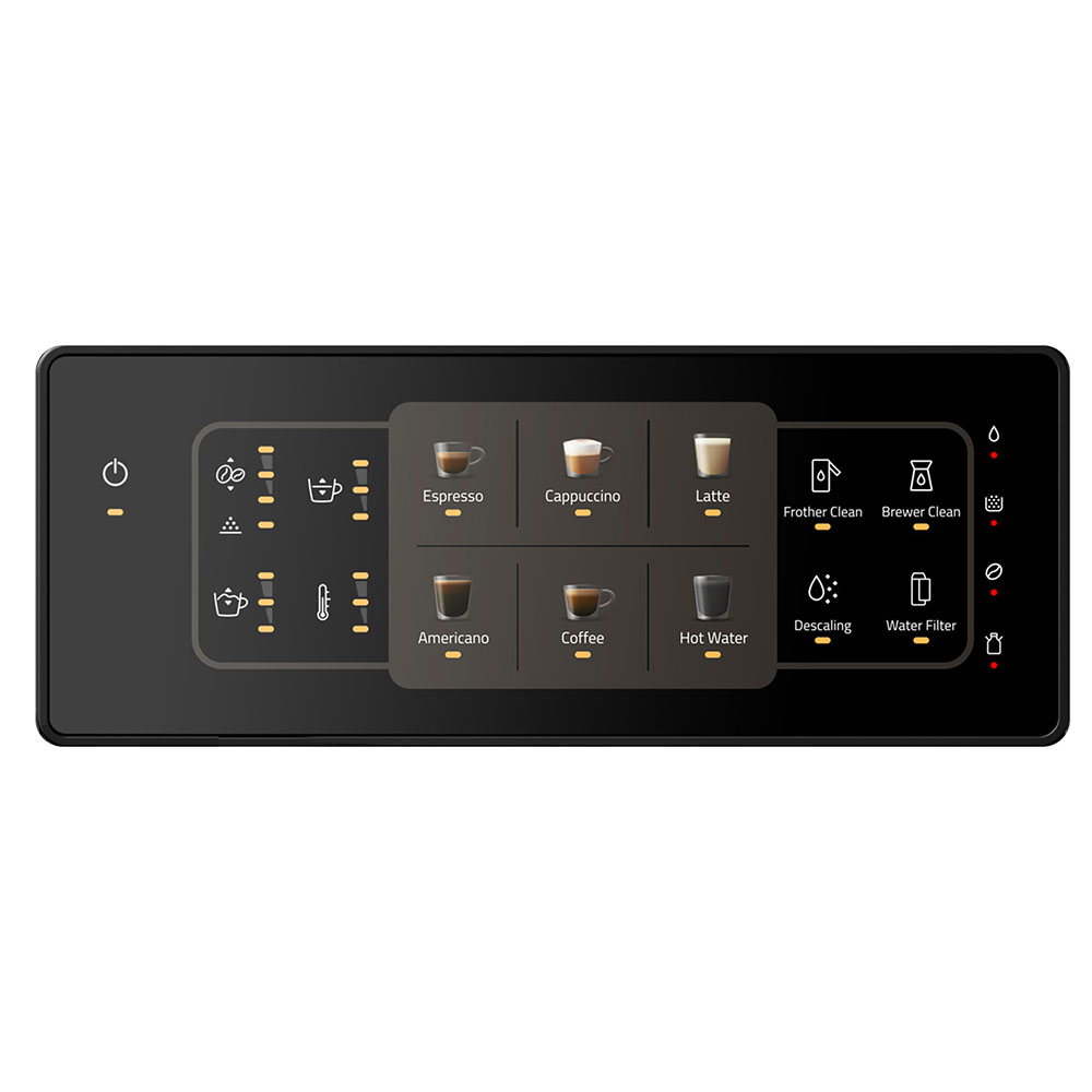 Количество, состав и виды переключателей в современных кофемашинах определяются типом устройства, а также степенью автоматизации приготовления. Самый распространенный тип переключателей на панели управления — обычные кнопки. Ими оснащаются в первую очередь рожковые, капельные, чалдовые модели. В кофемашинах эспрессо и автоматических, как правило, присутствует хотя бы одна обычная кнопка включения и выключения для экстренных случаев. Большинство же автоматических и эспрессо-кофемашин оснащается сенсорными кнопками. По сравнению с обычными они имеют несколько преимуществ, среди которых лучшая защита от влаги и большее удобство в очистке, так как между кнопкой и поверхностью у них не может попасть грязь.