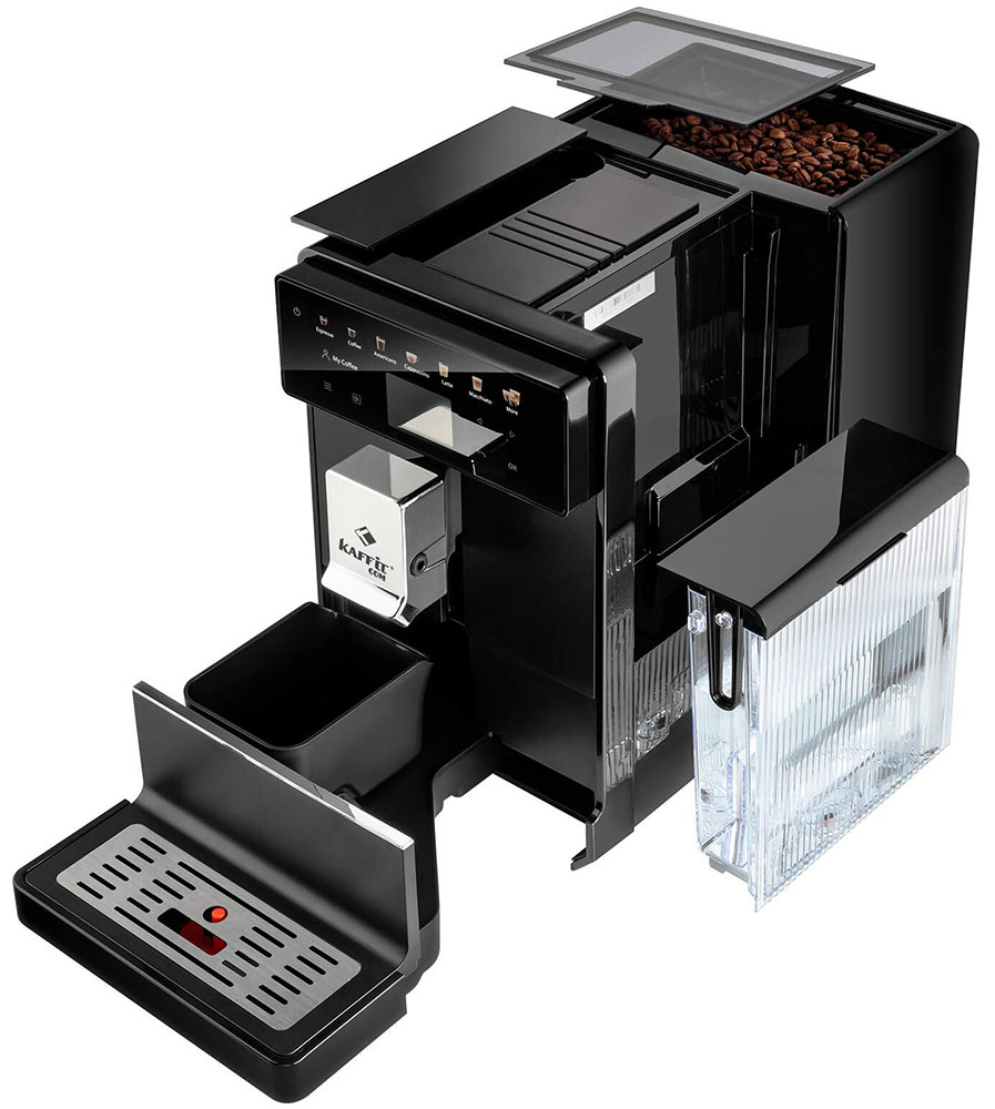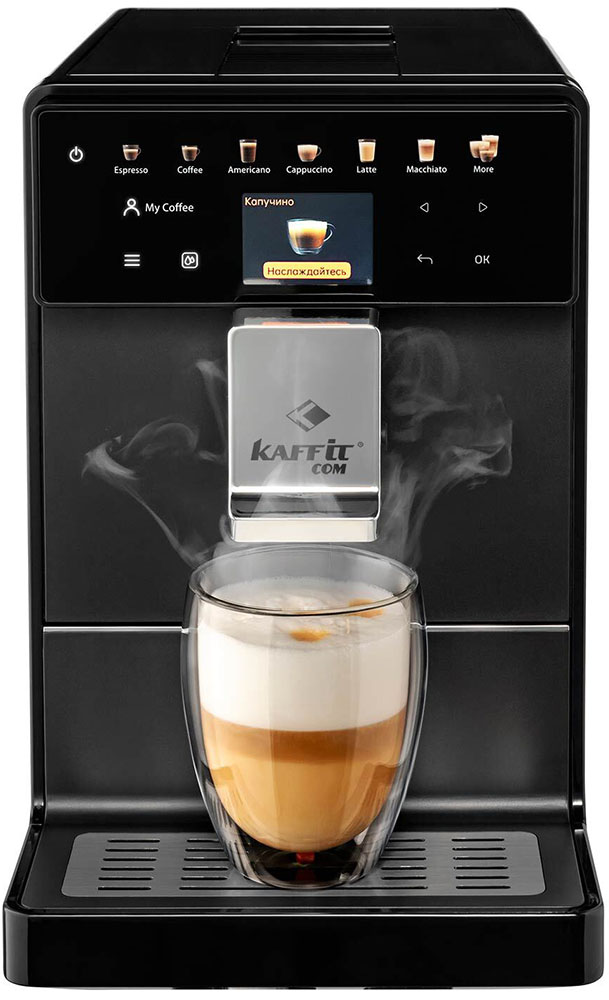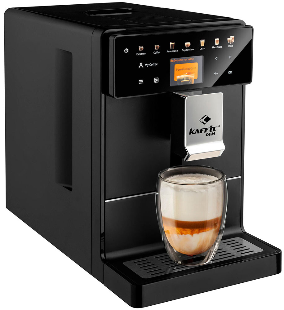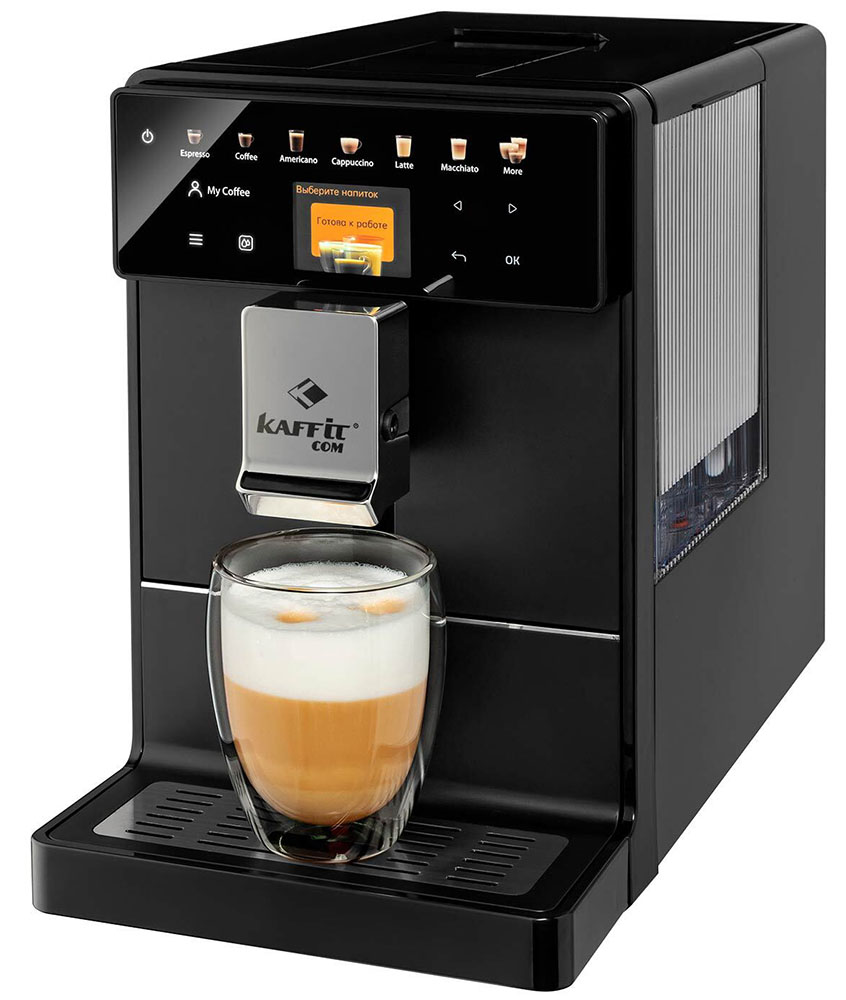 В модели Kaffit com A5-2 Black используются сразу два типа кофе — молотый и зерновой: это расширяет ваши возможности и увеличивает разнообразие напитков, которые можно приготовить с отличиями в крепости, ароматности и терпкости. Автоматическая кофемашина — по сути облегченная и уменьшенная версия приборов из кафе, она обладает широкими возможностями, разнообразным меню и продуманной системой контроля за процессом. Это отличный выбор как для дома, так и для офиса.