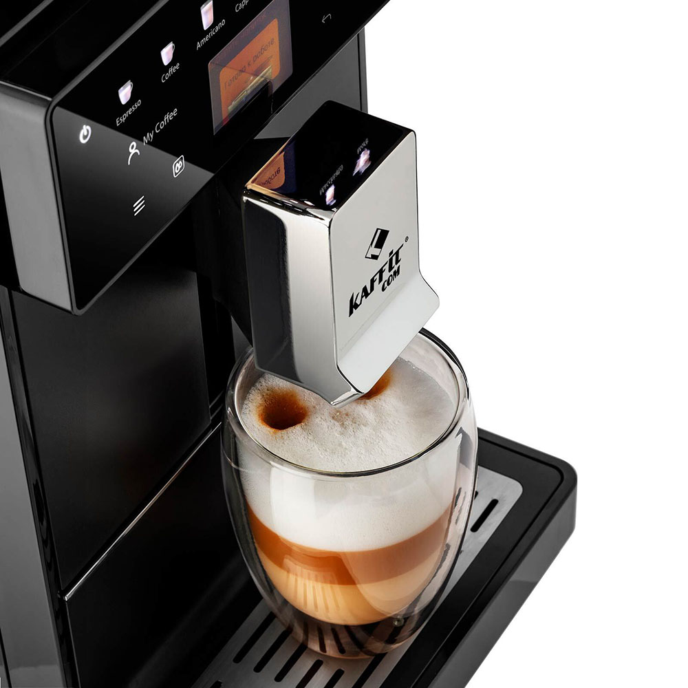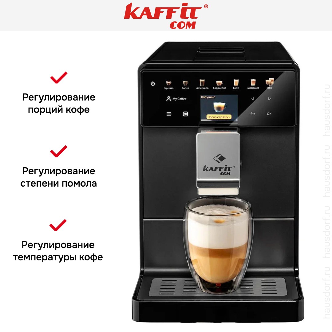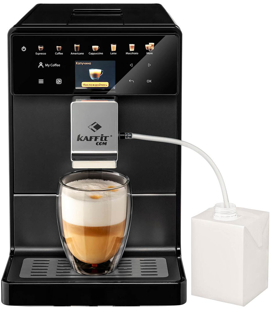 В модели Kaffit com A5-2 Black используются сразу два типа кофе — молотый и зерновой: это расширяет ваши возможности и увеличивает разнообразие напитков, которые можно приготовить с отличиями в крепости, ароматности и терпкости. Автоматическая кофемашина — по сути облегченная и уменьшенная версия приборов из кафе, она обладает широкими возможностями, разнообразным меню и продуманной системой контроля за процессом. Это отличный выбор как для дома, так и для офиса.