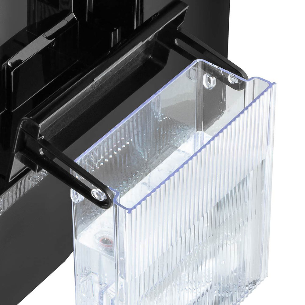 Индикатор уровня воды в автоматических кофемашинах указывает, насколько заполнен водой соответствующий резервуар и требуется ли доливать ее. Зачастую уровень воды можно контролировать визуально, через прозрачное окошко на корпусе прибора, с нанесенной шкалой в литрах или стандартных чашках. В ряде моделей резервуар оснащается поплавковым датчиком: как только он достигает определенного уровня, загорается светодиод на панели управления или появляется сообщение на дисплее. При появлении сигнала резервуар следует извлечь, заполнить водой и правильно установить на прежнее место.