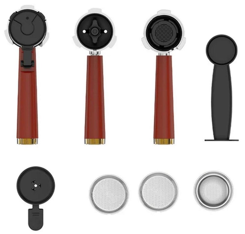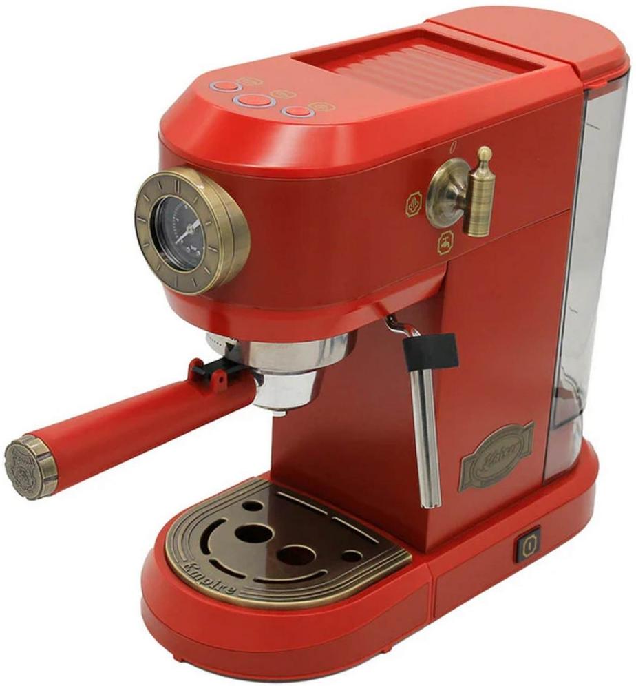 Визуальные характеристики кофемашины играют важную роль при выборе. Цвет корпуса этой модели — красный. Основной материал поверхности — металл.
