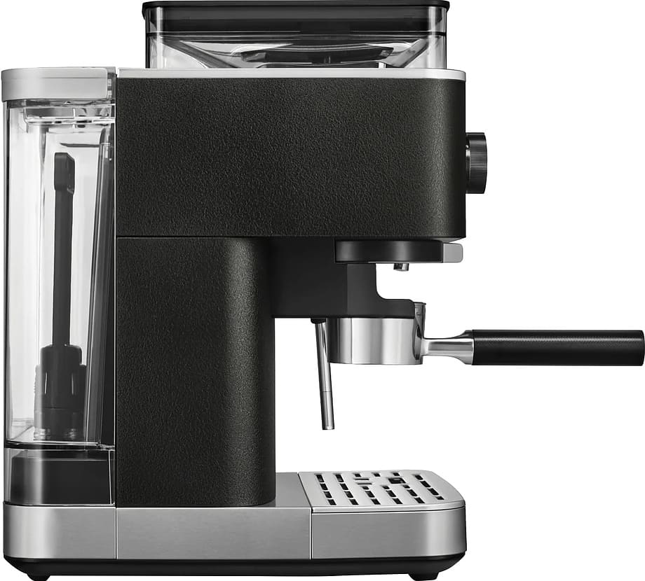 В модели KitchenAid 5KES6551EBK используются сразу два типа кофе — молотый и зерновой: это расширяет ваши возможности и увеличивает разнообразие напитков, которые можно приготовить с отличиями в крепости, ароматности и терпкости. Данная рожковая кофемашина предназначена в основном для приготовления эспрессо и капучино; благодаря быстрой работе и отсутствию кофейной взвеси в чашке она востребована как в быту, так и в офисах.