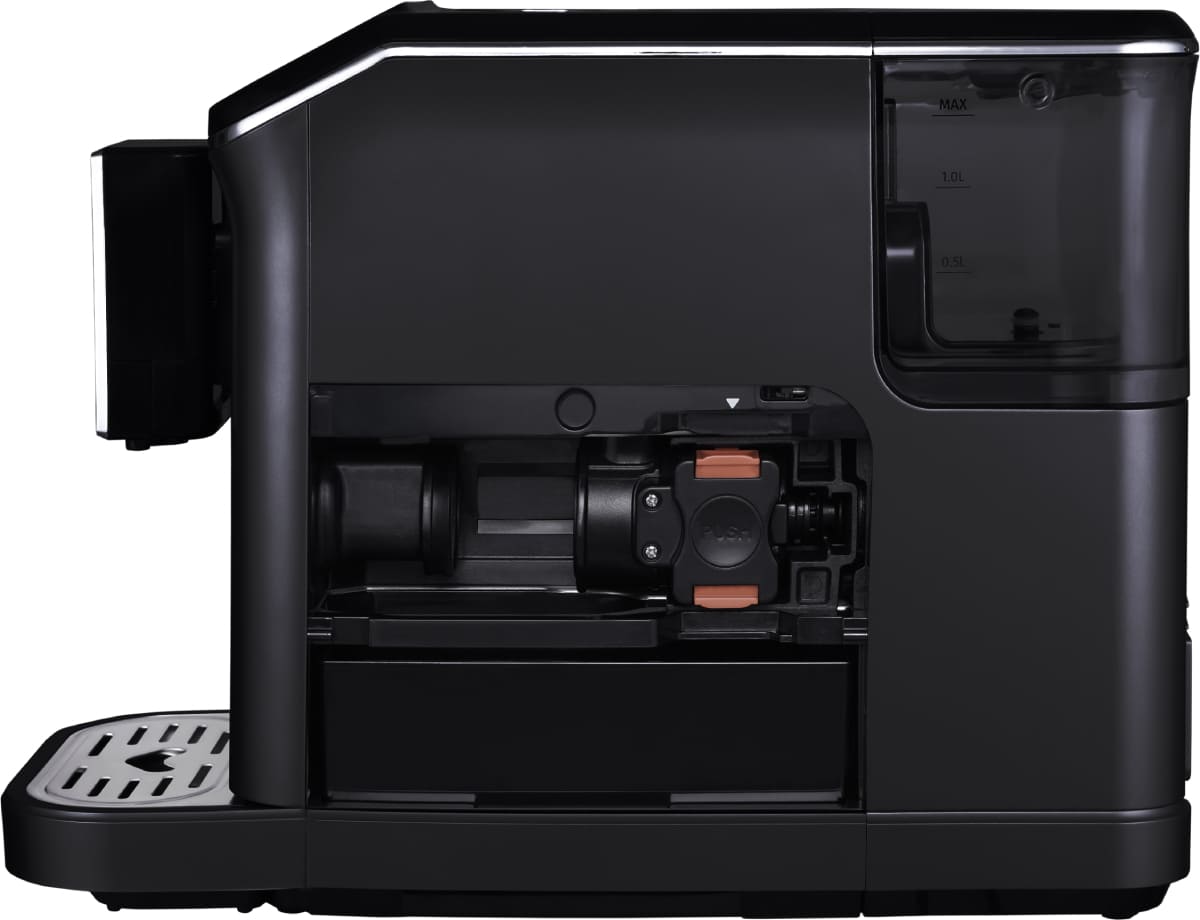 Визуальные характеристики кофемашины играют важную роль при выборе. Цвет корпуса этой модели — черный. Основной материал поверхности — нержавеющая сталь / пластик.
