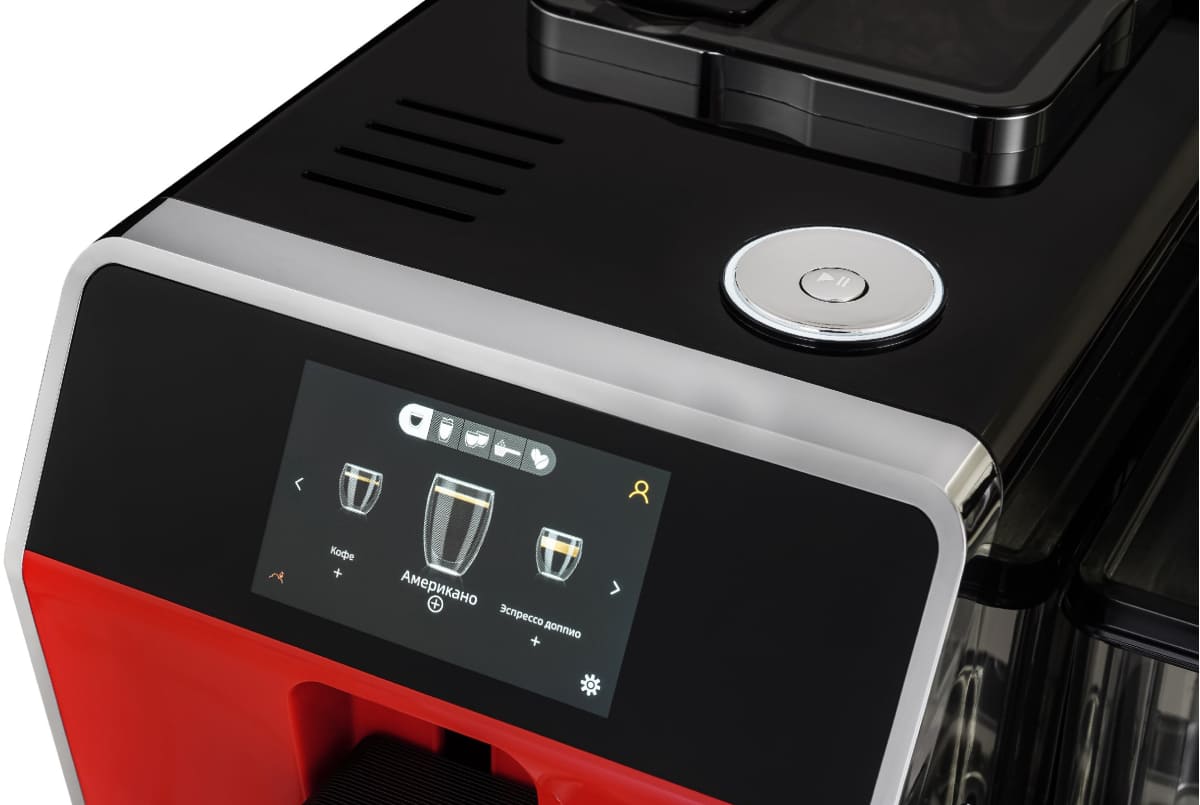 Дисплей в кофемашине позволяет быстро и без труда регулировать параметры работы и контролировать ход приготовления, подсказывает порядок действий и предоставляет возможность выбора вариантов управления при помощи меню. На экране отображается полная информация о состоянии устройства, визуализируется процесс приготовления, появляются предупреждения о том, что необходимо пополнить контейнеры для воды и зерен, а также выводятся сообщения об ошибках.