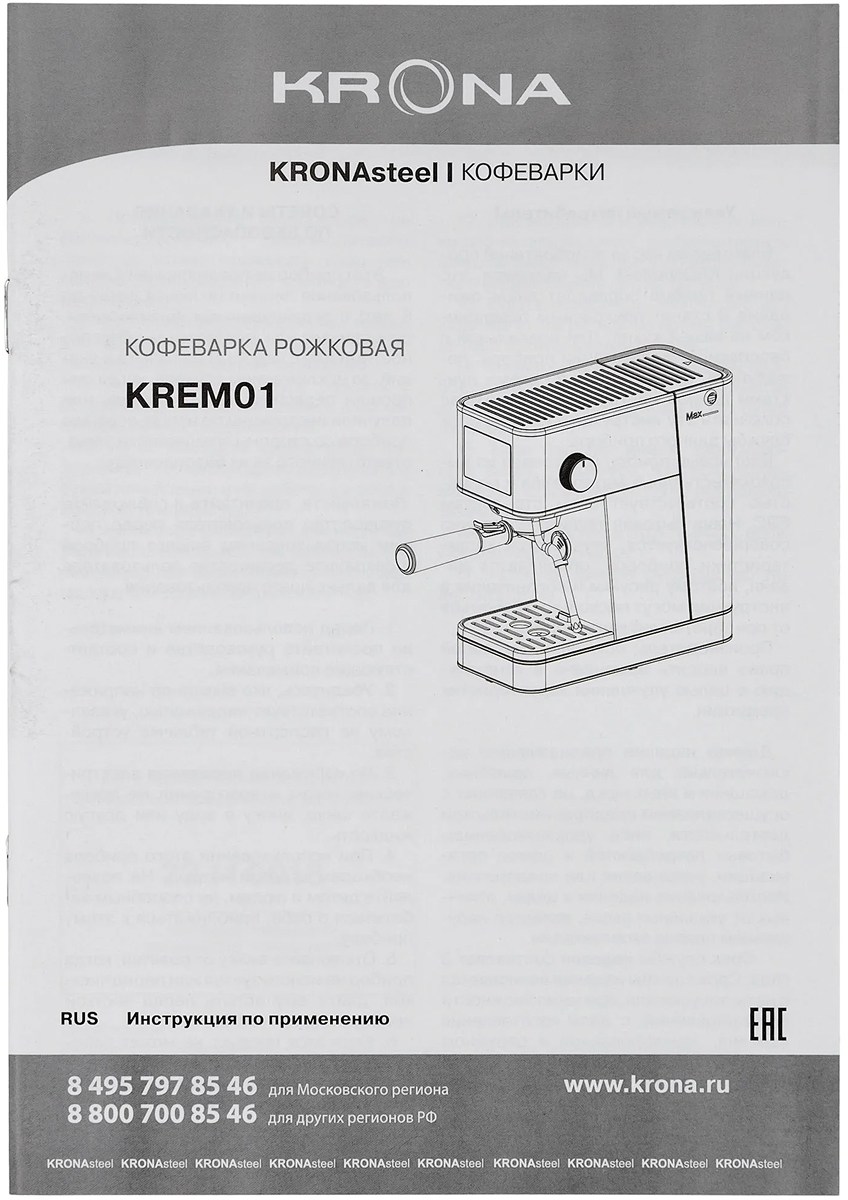 Кофеварка KRONA Espresso Kaffeemaschine Inox КА-00008023 в Краснодаре
