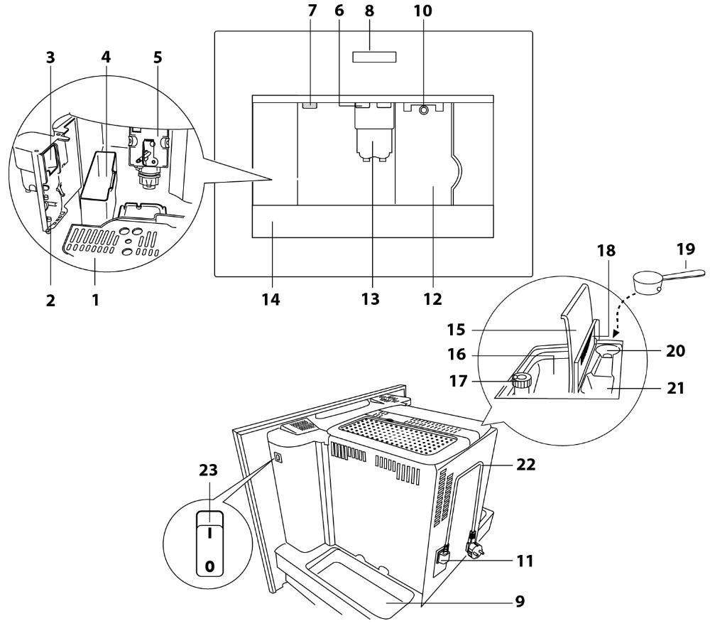 Съемный контейнер для воды во встраиваемых и отдельно стоящих кофемашинах — удобный аксессуар, позволяющий ускорить процесс приготовления напитков. Прозрачные контейнеры с легким доступом могут размещаться на фронтальной или верхней части машины. Для удобного извлечения они оснащаются ручками, залив воды производится через отверстие, которое можно закрыть плотной крышкой. Форма контейнера, как правило, прямоугольная, а материалом изготовления служит прозрачный безопасный пластик. Контейнеры могут оснащаться датчиком уровня воды для напоминания о необходимости их заполнения.