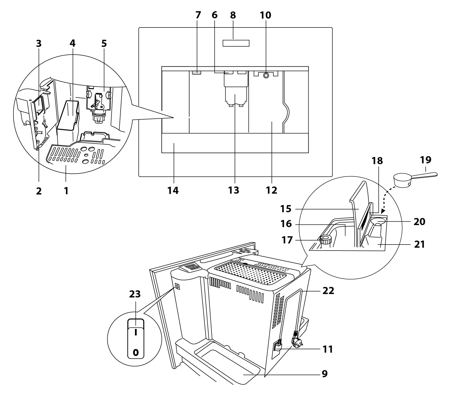 Дисплей в кофемашине позволяет быстро и без труда регулировать параметры работы и контролировать ход приготовления, подсказывает порядок действий и предоставляет возможность выбора вариантов управления при помощи меню. На экране отображается полная информация о состоянии устройства, визуализируется процесс приготовления, появляются предупреждения о том, что необходимо пополнить контейнеры для воды и зерен, а также выводятся сообщения об ошибках.