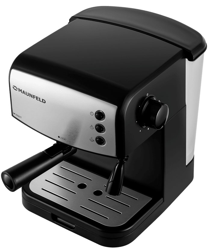 В данном приборе Маунфилд для нагрева воды используется бойлер — в нем постоянно поддерживается необходимая для приготовления температура, поэтому скорость варки кофе достаточно высокая. Единственный недостаток — после перерыва в работе требуется некоторое время, чтобы заново нагреть весь объем воды. Простое и понятное управление — дополнительное преимущество модели. Производители разместили на корпусе кнопочные / поворотные переключатели.