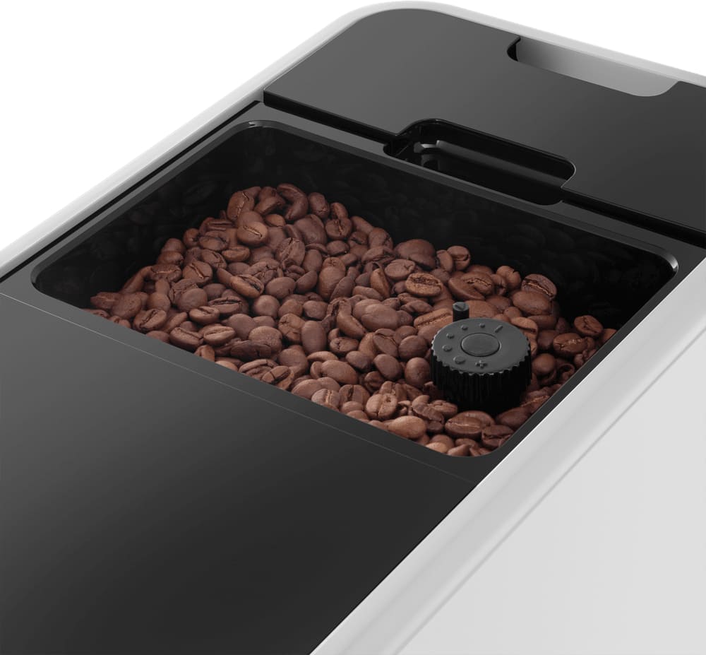 Визуальные характеристики кофемашины играют важную роль при выборе. Цвет корпуса этой модели — белый. Основной материал поверхности — нержавеющая сталь / пластик.
