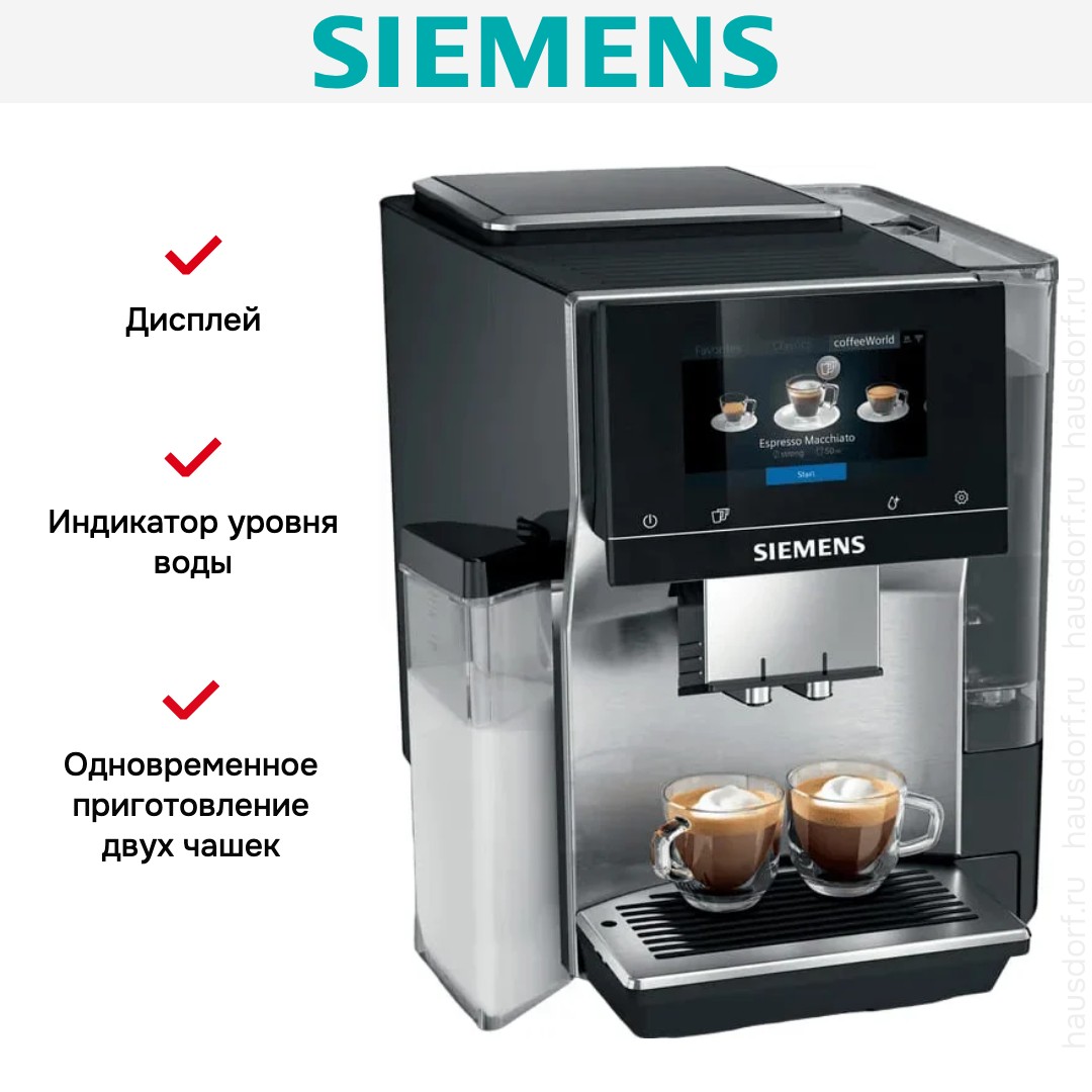 Кофемашина Siemens TQ713D03 — автоматическая модель для дома и офиса, которая сочетает лаконичный дизайн и продуманный набор функций для поклонников свежесмолотого кофе. Эта компактная машина высотой 38 см и шириной 35,2 см удобно размещается на кухонной рабочей поверхности и сохраняет стильный внешний вид благодаря глубокому черному цвету и элементам из металла.