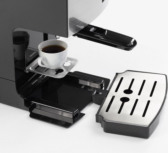 Съемный лоток для сбора капель (каплесборник) позволяет защитить столешницу от капель, которые могут попасть на нее при удалении чашки с напитком с подставки. Это плоский резервуар из пластика, который находится под решетчатой подставкой и легко выдвигается для очистки. Подсчитано, что в автоматической кофемашине в лоток попадает 15-40 мл воды за одно приготовление. Офисные модели, таким образом, должны иметь больший объем лотка, чем домашние. О заполнении этого резервуара оповещает либо специальный индикатор на панели управления, либо соответствующее сообщение на дисплее.