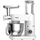 Современные кухонные комбайны — мощные многофункциональные устройства, способные заменить мясорубку, овощерезку, миксер, блендер и другие кухонные приборы. Для этого они в зависимости от модели комплектуются большим набором аксессуаров, включая ножи из нержавеющей стали для измельчения мяса и овощей, дисковые стальные и пластиковые ножи-терки, крюки для замешивания теста, соковыжималки, толкатели для мясорубки, чаши блендера, насадки для приготовления пюре, специальные приспособления для сосисок и колбас, венчики для взбивания, мельницы для муки и зерен и многое другое.