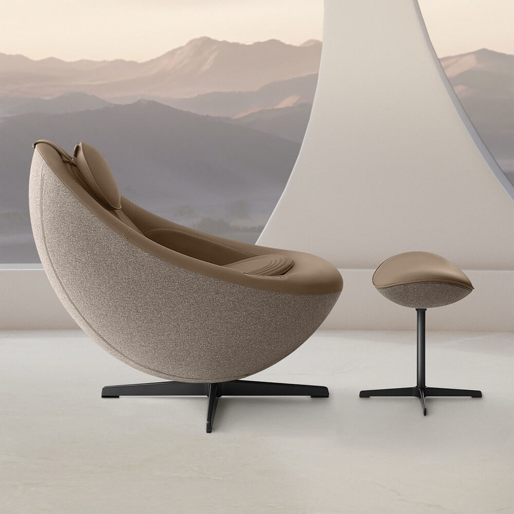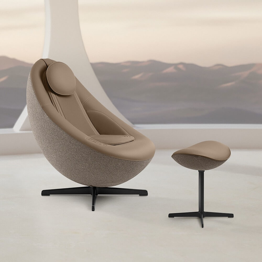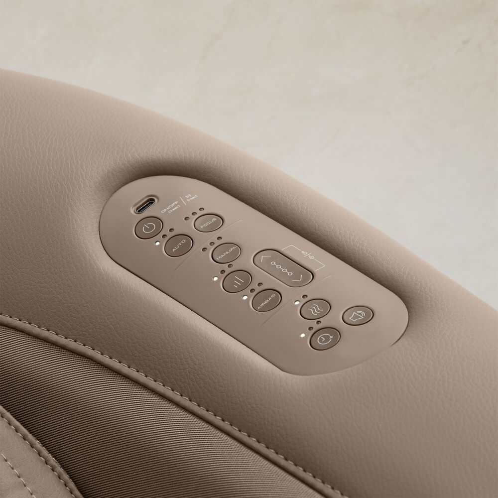 Массажное кресло выполнено в корейском интерьерном дизайне — оно идеально вписывается в обстановку. Удобная панель управления на подлокотнике с возможностью зарядки телефона и запуска музыки.