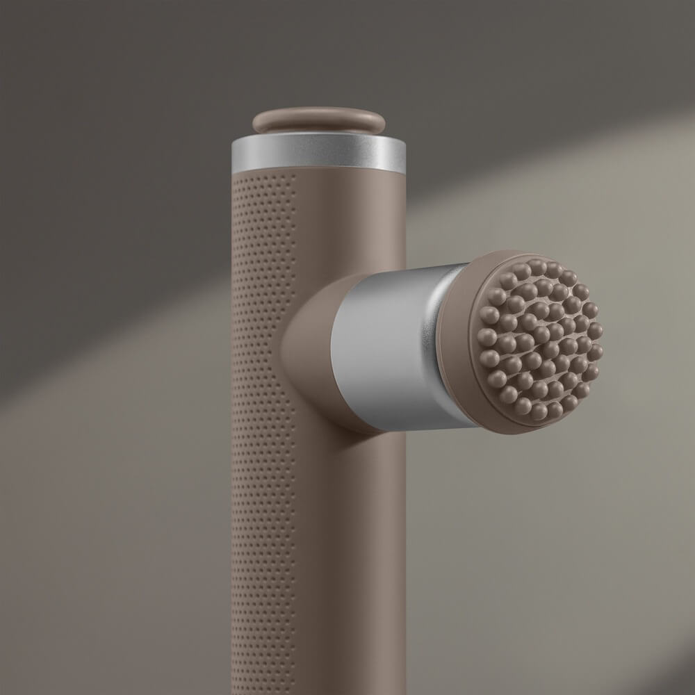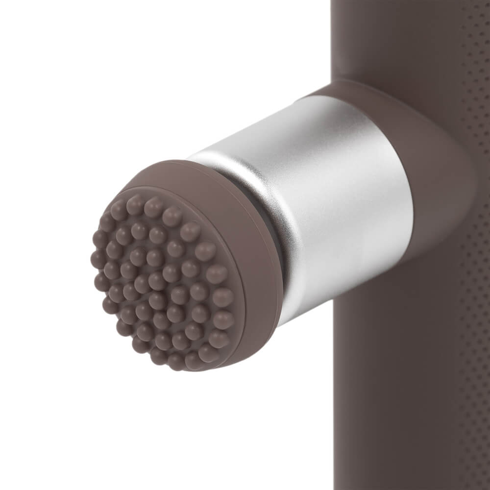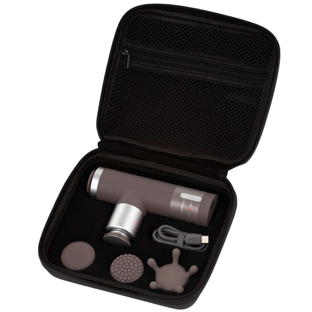 Перкуссионный массажер предназначен для расслабления мышц под давлением разной степени. Разные насадки подходят для лица, ладоней и ступней, тела.