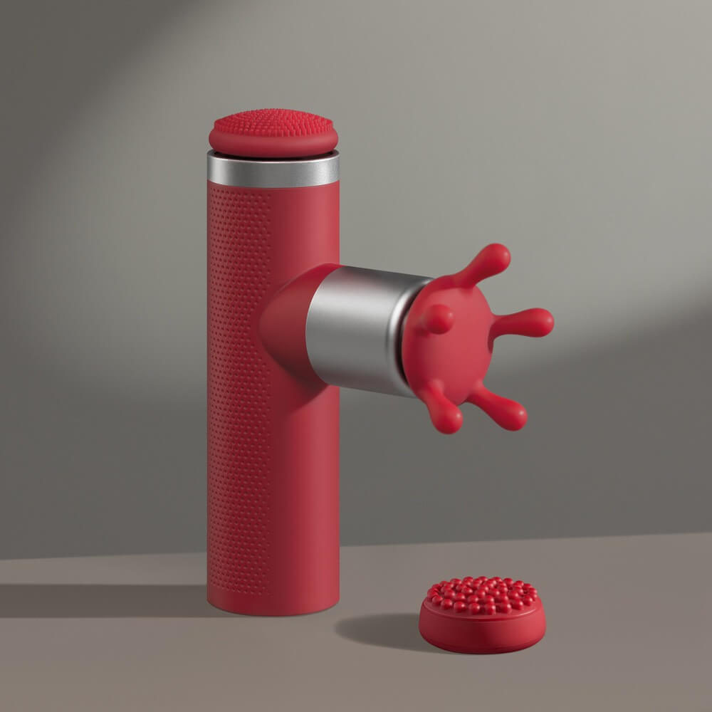 Перкуссионный массажер предназначен для расслабления мышц под давлением разной степени. Разные насадки подходят для лица, ладоней и ступней, тела.