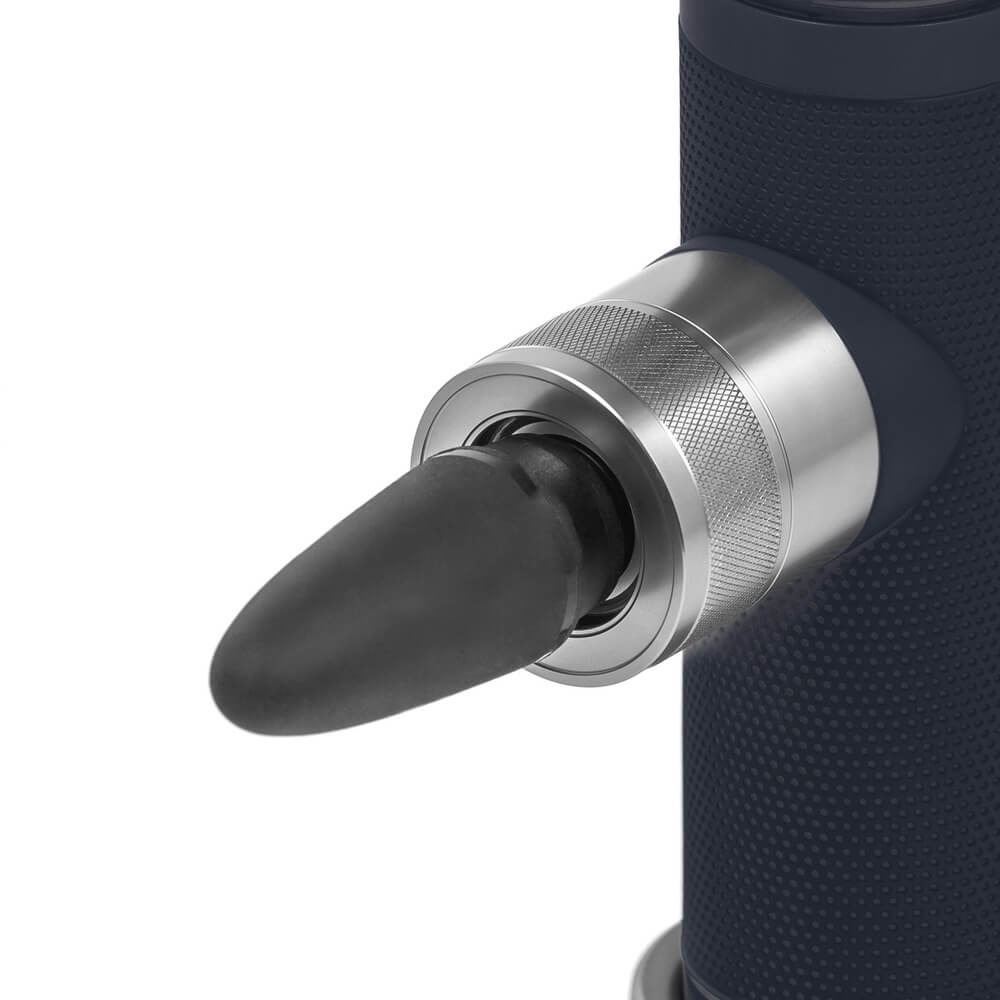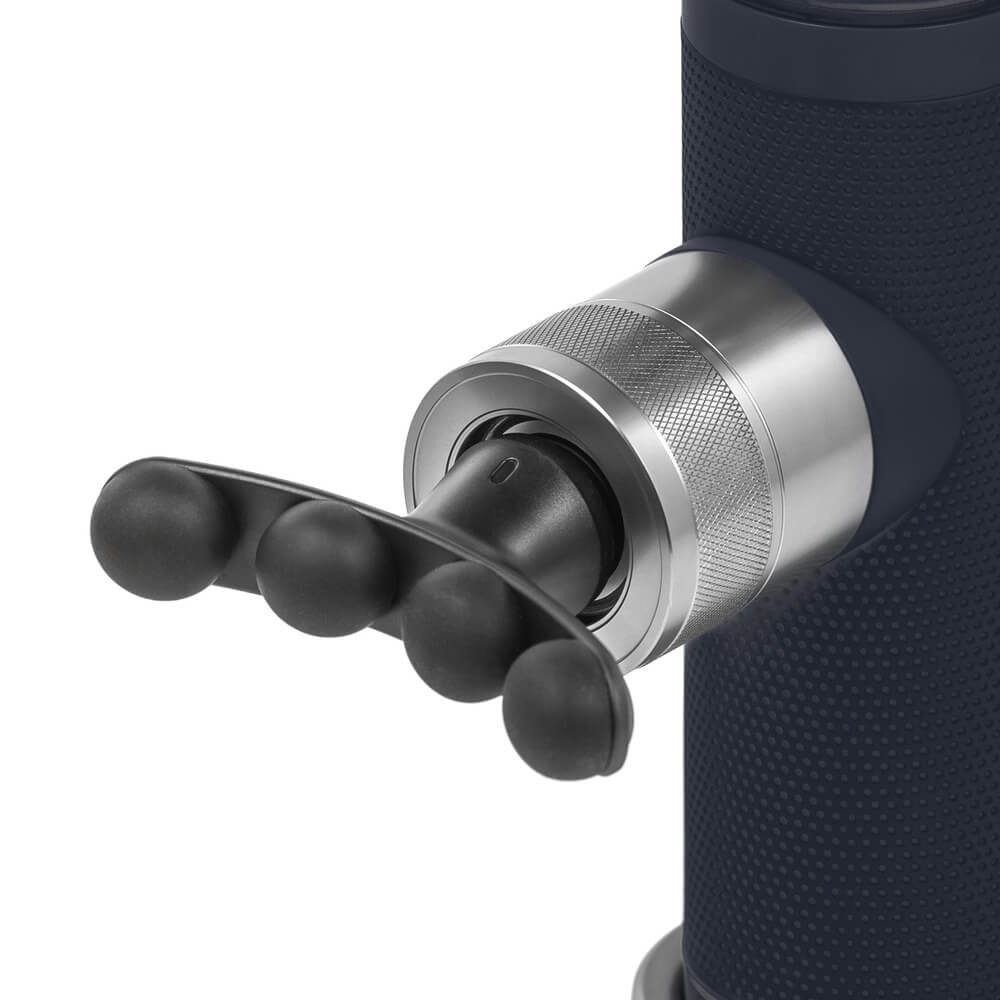 Модель оснащена несколькими режимами интенсивности и комплектом сменных насадок, каждая из которых предназначена для определённой зоны: шарообразная — для широких мышц спины и бёдер, плоская — для общего расслабления, вилкообразная — для шеи и позвоночника, а пулеобразная — для точечного воздействия на триггерные точки. Простое управление позволяет легко подобрать нужный уровень воздействия без сложных настроек.