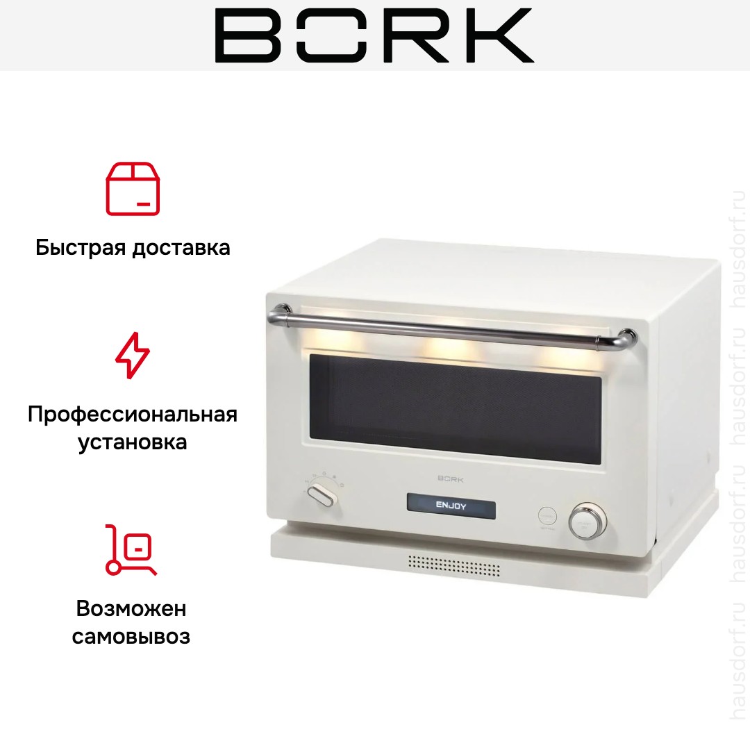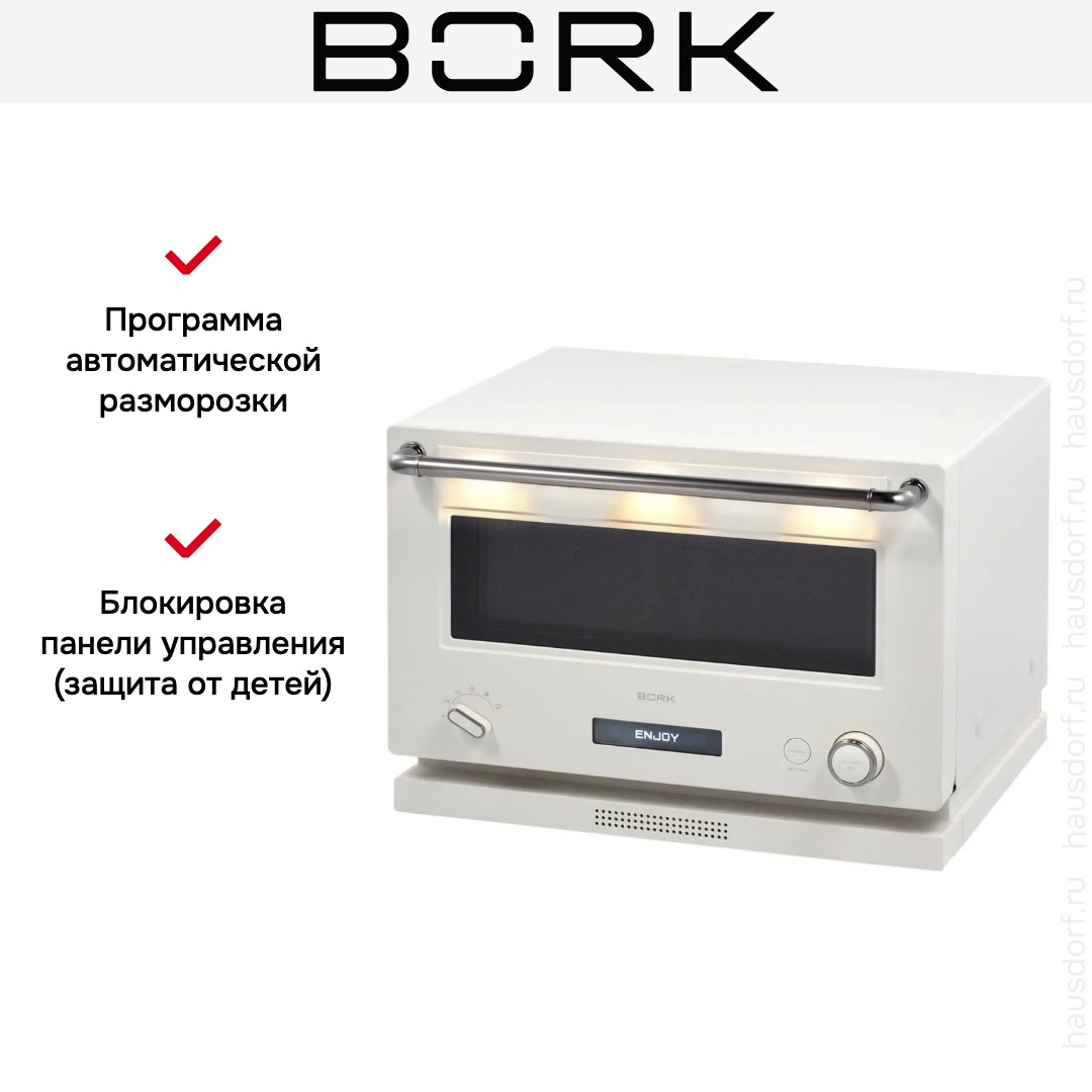 Отдельностоящая микроволновая печь BORK W750 wt — компактное и полезное дополнение к уже имеющейся кухонной технике. Ее можно установить на шкаф, на свободную столешницу, но не рекомендуется ставить на другие приборы, например, холодильник. Цвет этой модели: белый.