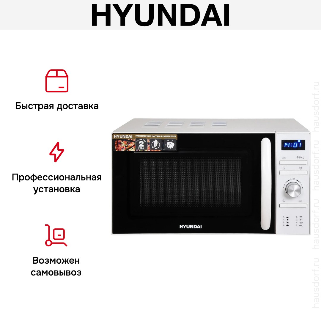 Отдельностоящая микроволновая печь Hyundai HYM-D3027 — компактное и полезное дополнение к уже имеющейся кухонной технике. Ее можно установить на шкаф, на свободную столешницу, но не рекомендуется ставить на другие приборы, например, холодильник. Цвет этой модели: белый.