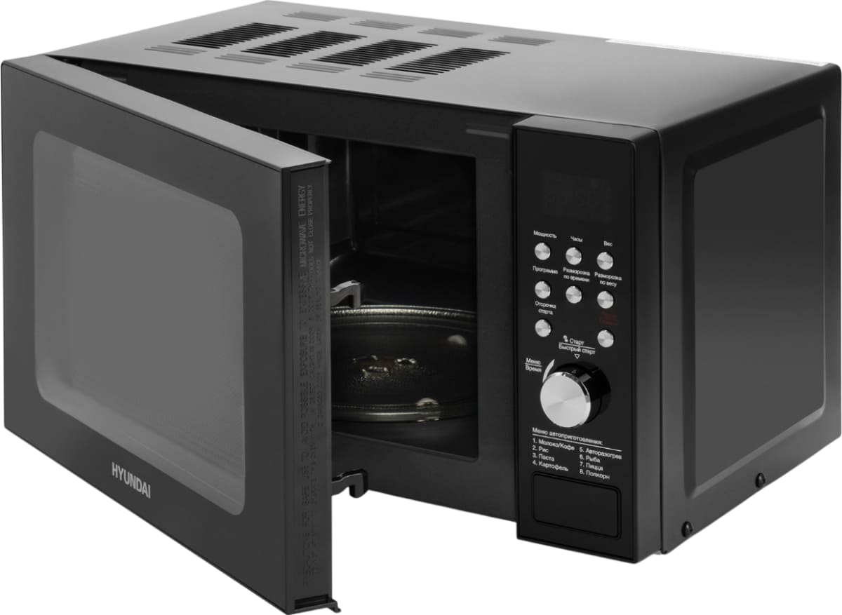 Количество режимов в данной модели Хендай: 3 шт. Для обработки продуктов и готовых блюд используются следующие виды нагрева: Микроволны, Автоматический режим разморозки, Автоматический режим приготовления. Если вы спешите, а еду нужно разогреть, используйте быстрый старт — благодаря ему 30 секунд прибор работает на полной мощности. Отдельная опция для размораживания продуктов и полуфабрикатов облегчает жизнь — не нужно самостоятельно настраивать параметры. Автоматические программы для приготовления добавлены производителем также для упрощения работы.