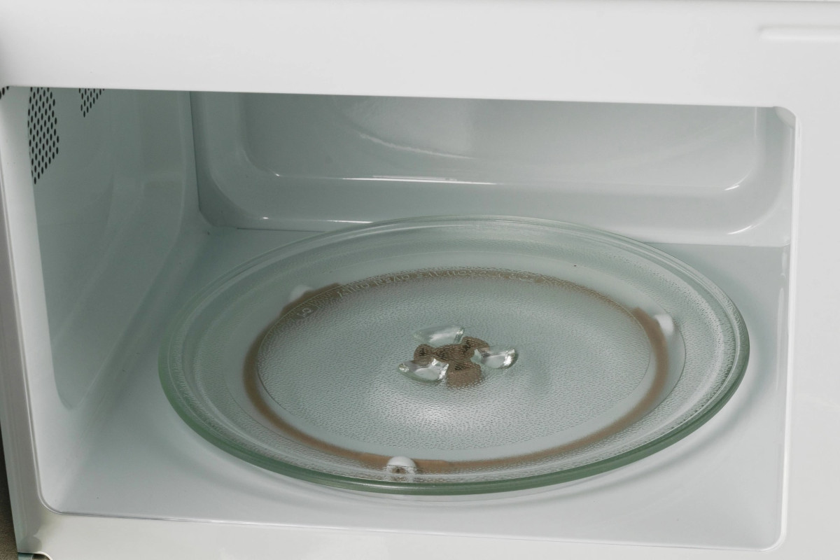 Вращающееся стеклянное блюдо в микроволновой печи позволяет микроволнам равномерно прогревать все блюдо. В большинстве печей магнетрон — источник электромагнитного излучения, — находится в нижней части корпуса или реже сбоку. Микроволны могут проникать в продукты как напрямую, так и отразившись от стенок и потолка камеры. Стеклянное блюдо, иногда называемое также поворотным столом или поддоном, устанавливается на вращающийся механизм с колесиками. Диаметр его зависит от объема камеры и может составить от 20 до 35 см. Размещать на нем можно как одну, так и несколько форм с готовящейся пищей.