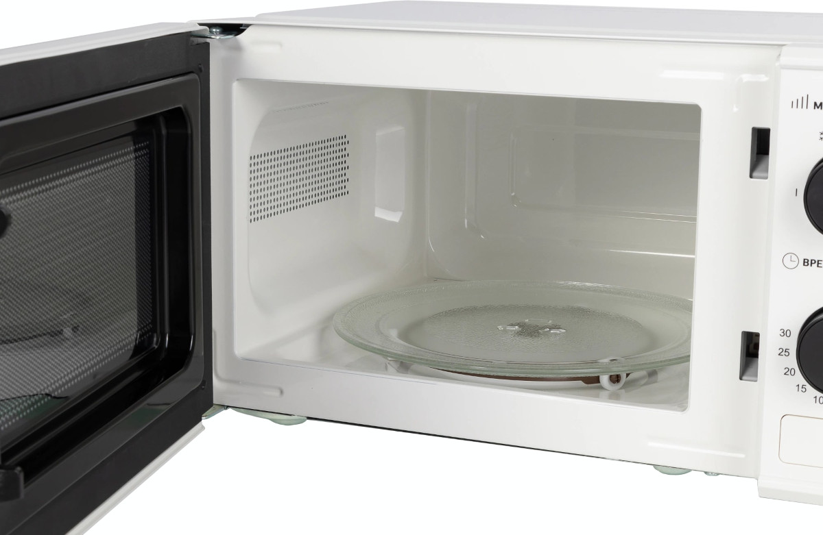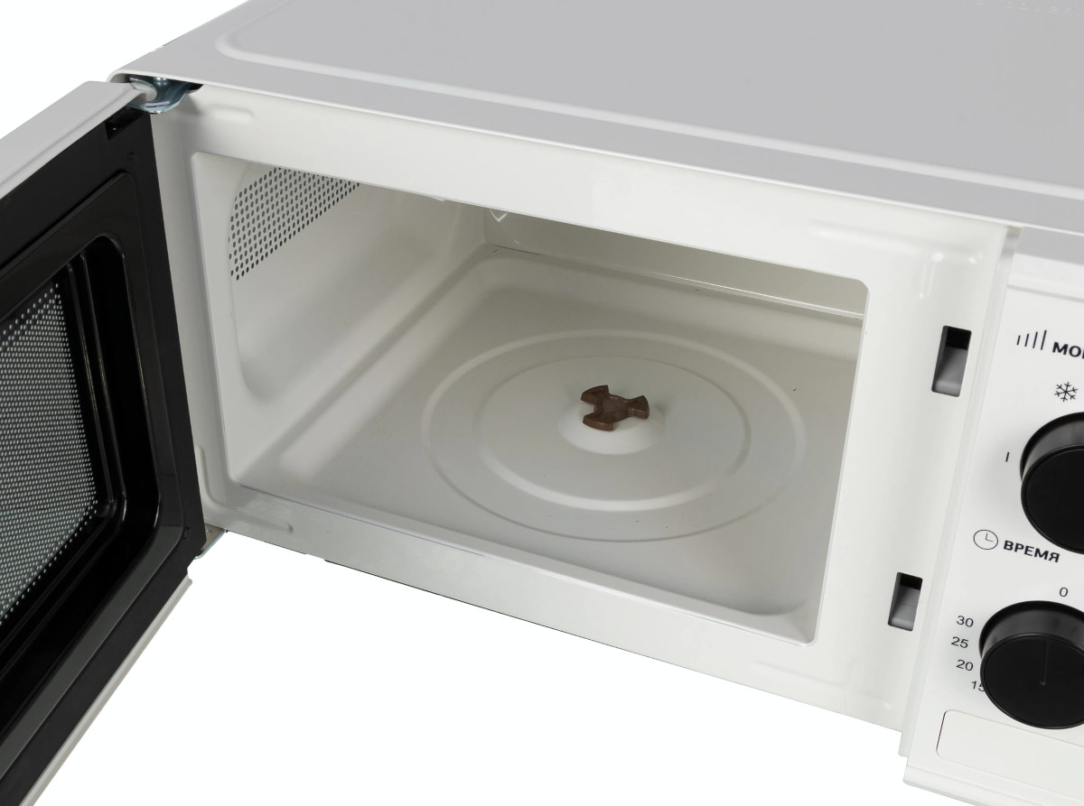 Материал внутренней поверхности — эмаль. Это самое распространенное покрытие, так как оно зарекомендовало себя высоким качеством, устойчивостью к механическим воздействиям и простотой ухода. Полезный объем для готовки — 20 л. Для установки и прогрева посуды используется классическое вращающееся блюдо. Стандартное механическое управление не вызовет трудностей ни у кого из вашей семьи. Для изменения настроек или выбора программ используются следующие переключатели: поворотные.