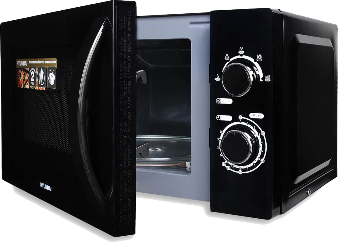 Количество режимов в данной модели Хендай: 5 шт. Для обработки продуктов и готовых блюд используются следующие виды нагрева: Микроволны. Отдельная опция для размораживания продуктов и полуфабрикатов облегчает жизнь — не нужно самостоятельно настраивать параметры.