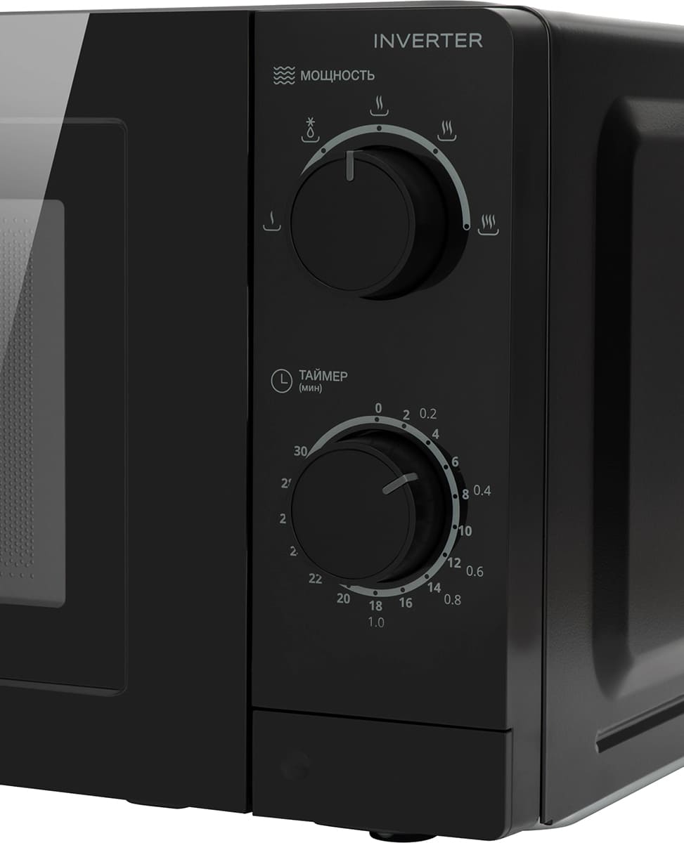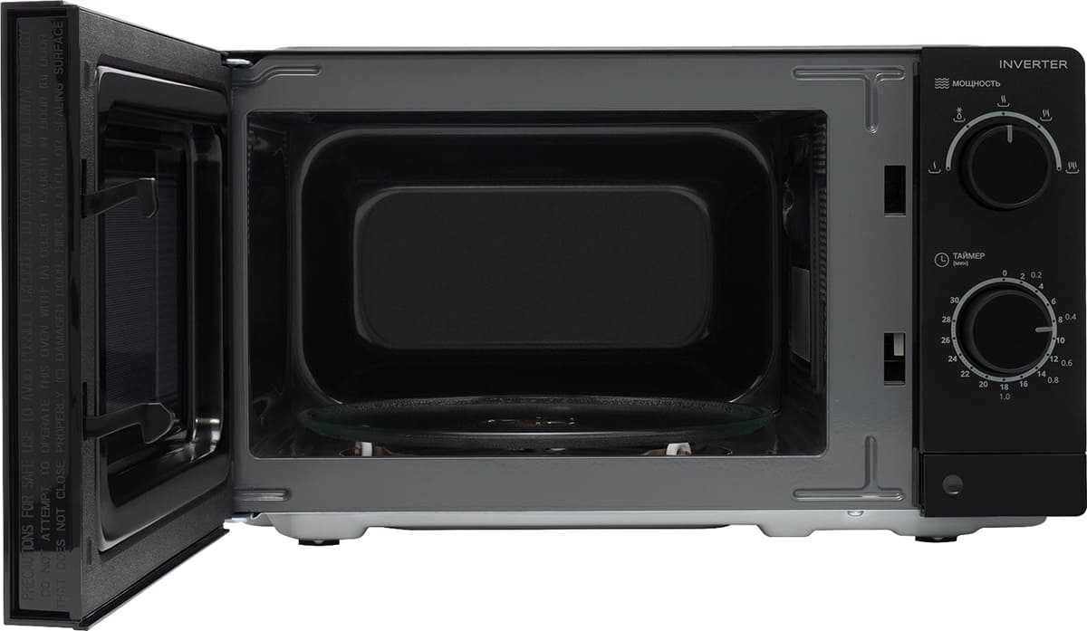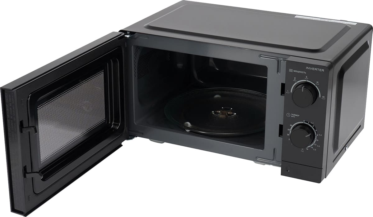 Инверторное управление мощностью в СВЧ-печи позволяет экономить электроэнергию и точнее регулировать нагрев. В обычной микроволновке устройство генерации микроволн — магнетрон — подключается к электросети через трансформатор: необходимый уровень мощности поддерживается путем его постоянного включения и выключения. Подключение через инвертор — устройство преобразования постоянного тока в переменный, — позволяет не отключать магнетрон. Инвертор занимает меньше места, электроэнергия не расходуется на включение и выключение, а влага внутри продуктов сохраняется лучше.