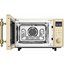 Микроволновые печи, как и другая бытовая техника, выпускаются в отдельно стоящем и встраиваемом варианте. Встраиваемые СВЧ-печи — вместительные устройства, которые можно отнести к премиальному сегменту. Они могут устанавливаться в колонну с другой бытовой техникой. Габаритные размеры встроенной печи позволяют монтировать ее в стандартную кухонную мебель. Изготовители предлагают модели в любом стиле — от хай-тек до классического и ретро. Подобные модели поддерживают несколько способов нагрева: кроме магнетрона, они могут оснащаться грилем разного типа, конвекцией и даже традиционным нагревом — такие СВЧ-печи по своим возможностям приближаются у духовке. Встроенная микроволновка подойдет для размещения в кухне любой площади, но стоимость ее может намного превышать стоимость отдельно стоящей модели.