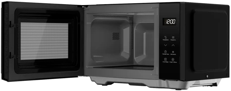 Микроволновые печи могут иметь навесную или откидную дверцу. Модели с навесной дверцей, запирающейся на механические защелки, могут быть как встраиваемыми, так и отдельно стоящими. Такие СВЧ-печи с дверцей, открывающейся влево или вправо, могут относиться к любой категории цен: от самых простых и дешевых до премиальных моделей. Недостатки дверцы с петлями сбоку — выступающая ручка, которая затрудняет очистку фасада, и небольшой угол открытия не более 90 градусов, который может препятствовать, например, размещению прибора в углу. Если ручка действительно мешает, стоит выбрать модель, дверца которой открывается нажатием на кнопку или прикосновением к сенсору на боковой панели управления.