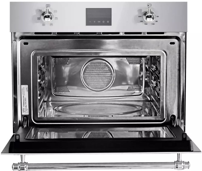 Нержавеющая сталь — быстро нагревается и хорошо переносит высокие температуры, поэтому ее используют в микроволновках с конвекцией.