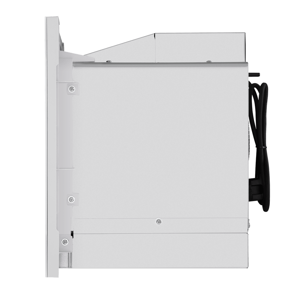 Глубина микроволновой печи —параметр, наиболее сильно влияющий на объем камеры и на диаметр вращающегося стеклянного блюда. Отдельно стоящие микроволновки соло, а также приборы, оснащенные грилем, имеют глубину от 35 до 45 см. При их установке на столешнице следует учитывать, в какую сторону и насколько широко будет открываться дверца. Глубина микроволновки, которая встраивается в кухонную мебель, также варьируется в широком диапазоне. Для полноразмерных моделей с откидной или навесной дверцей она может составить около 52-55 см, а для менее вместительных приборов — порядка 32-35 см.
