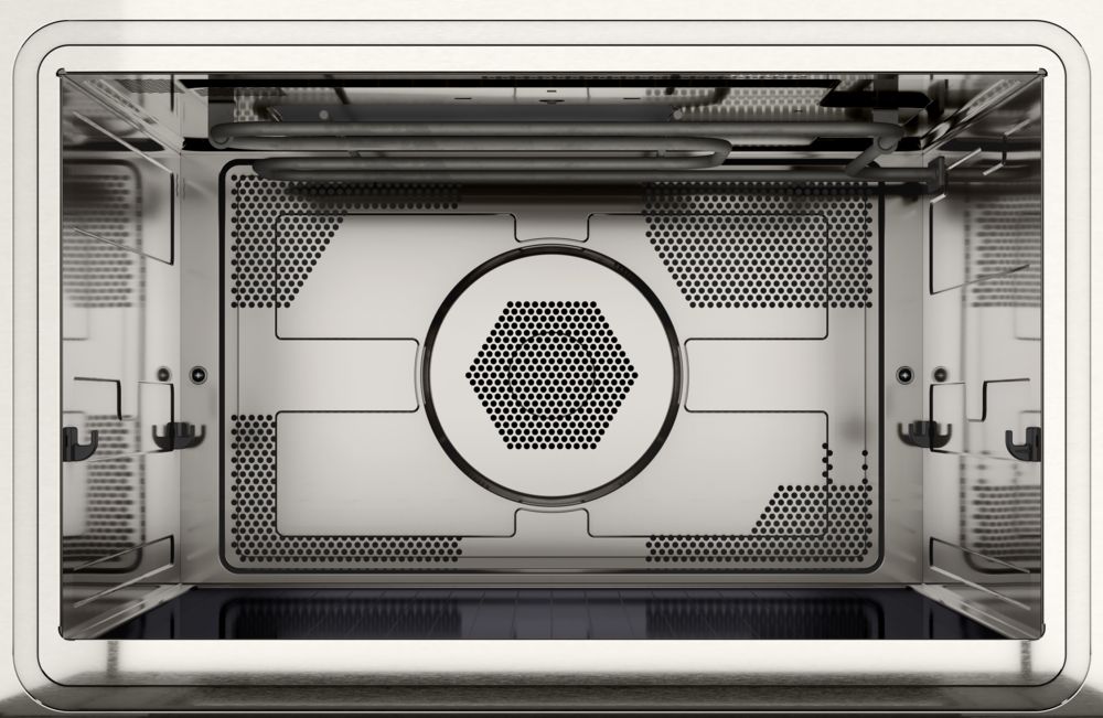 Конвекция — обдув горячим воздухом, который нагнетается специальным вентилятором (конвектором). Жар обволакивает блюдо со всех сторон, равномерно его пропекая. Благодаря этой функции в микроволновке можно не только разогревать, но и готовить.