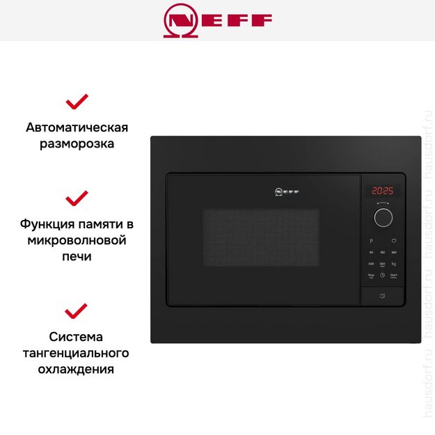Встраиваемая микроволновая печь Neff HLAWG25S3 — прекрасное дополнение к уже имеющейся кухонной технике. Ее можно установить в колонну с духовым шкафом, пароваркой, кофемашиной. Цвет этой модели: черный. За охлаждение стенок и защиту вас от ожогов, а мебели от повреждения, отвечает специальная тангенциальная технология.