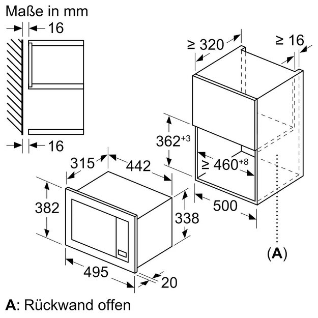 - Размеры ниши для встраивания (ВxШxГ): 38-38.2х56-56.8х55 cм