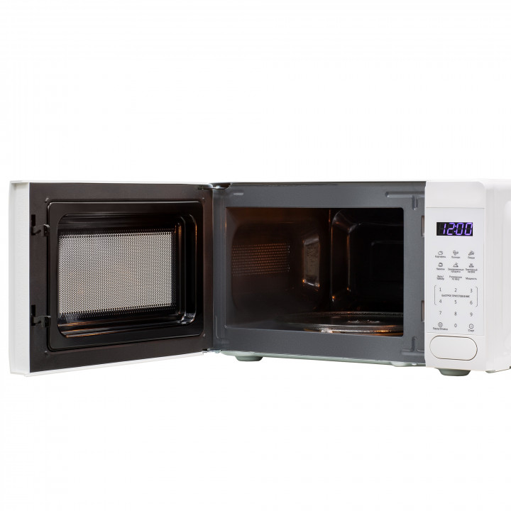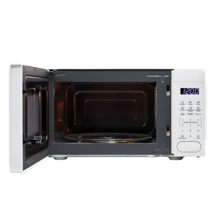 Полезный объем для готовки — 20 л. Для установки и прогрева посуды используется классическое вращающееся блюдо. Понятное электронное управление не вызовет трудностей ни у кого из вашей семьи. Для изменения настроек или выбора программ используются следующие переключатели: сенсорные.