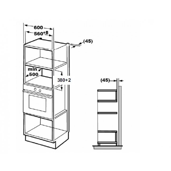 Глубина микроволновой печи —параметр, наиболее сильно влияющий на объем камеры и на диаметр вращающегося стеклянного блюда. Отдельно стоящие микроволновки соло, а также приборы, оснащенные грилем, имеют глубину от 35 до 45 см. При их установке на столешнице следует учитывать, в какую сторону и насколько широко будет открываться дверца. Глубина микроволновки, которая встраивается в кухонную мебель, также варьируется в широком диапазоне. Для полноразмерных моделей с откидной или навесной дверцей она может составить около 52-55 см, а для менее вместительных приборов — порядка 32-35 см.